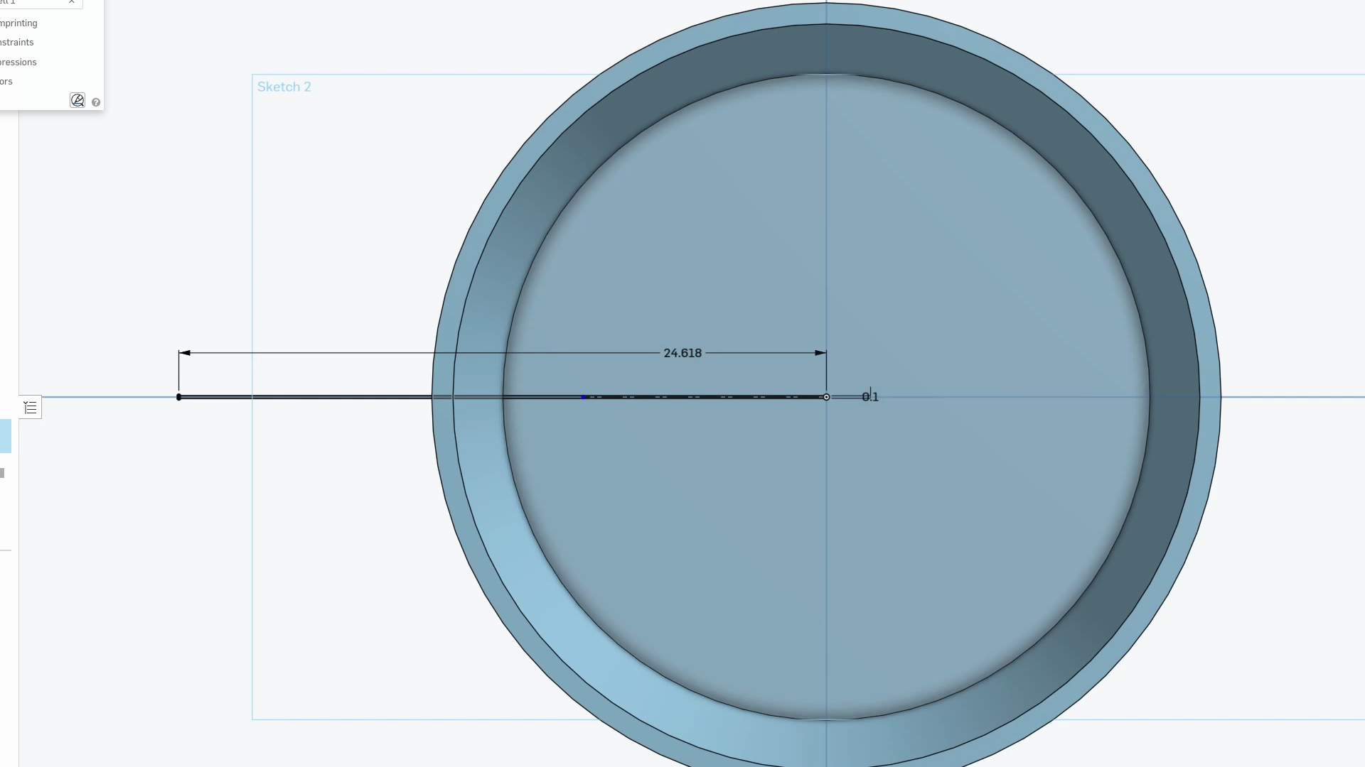 - Just as some quick setup, before continuing, create a sketch on the Front or Side Plane and, on that sketch, draw a straight line from the center of the base going up. The length of this line doesn’t matter, we just need it as an Axis guide.