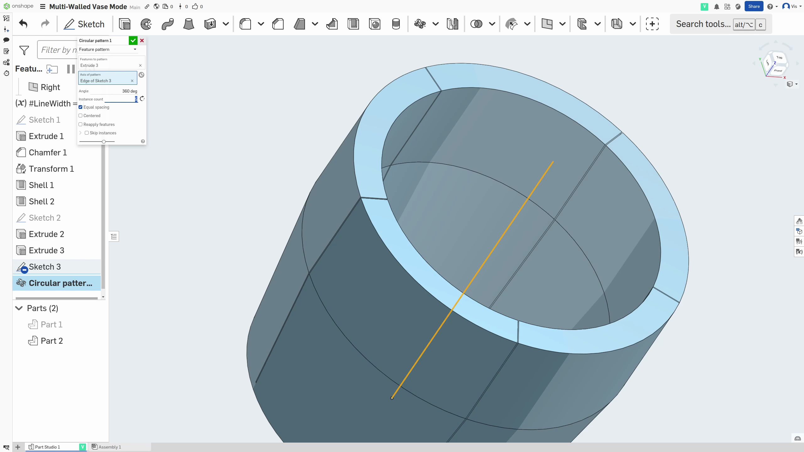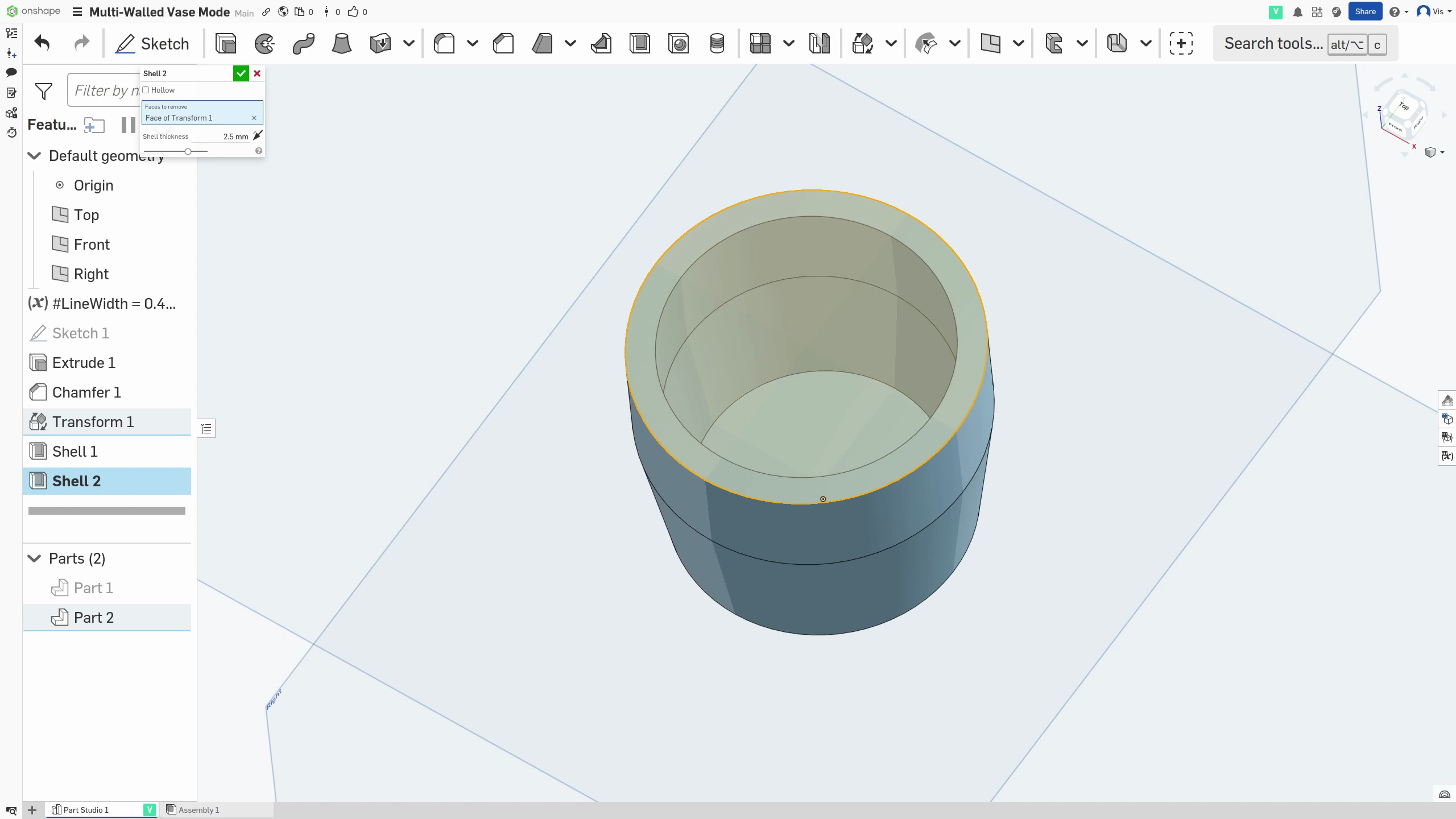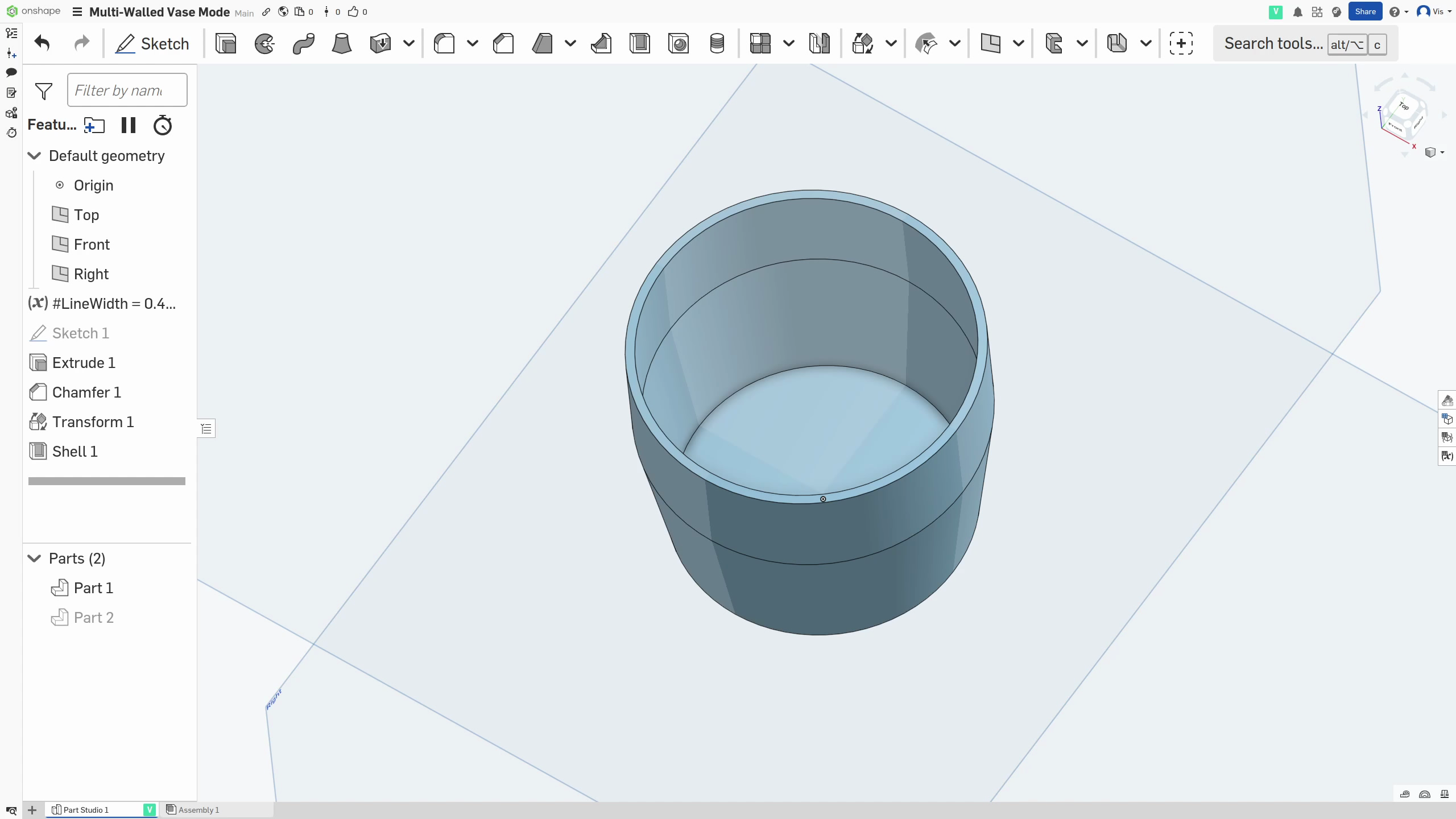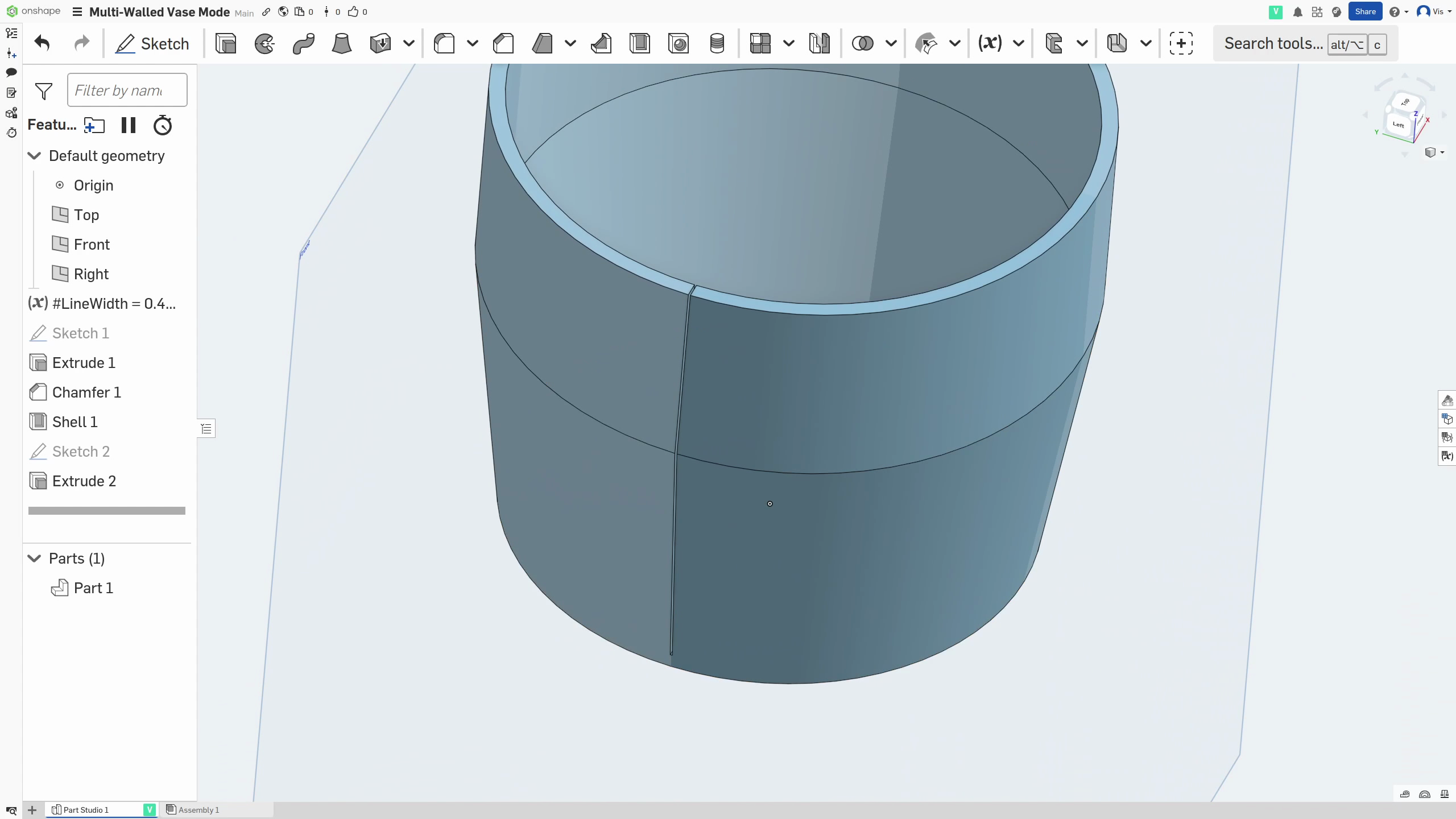 Here, I’m going to walk you through the process of quickly creating both double-walled vase mode parts as well as an even stronger ribbed variant. I’ll be using Onshape as the CAD software for reference, but you can apply these techniques using any software you prefer!
